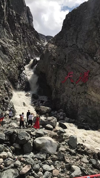 冰川融水化作潺潺细流,从陡峭的山顶倾斜而下,遥看瀑布似从天山来。停车区域从独山子方向看,山路错综盘旋,十分适合拍摄路的延伸,再有一排飞驰的车队,轻松拍出大片。