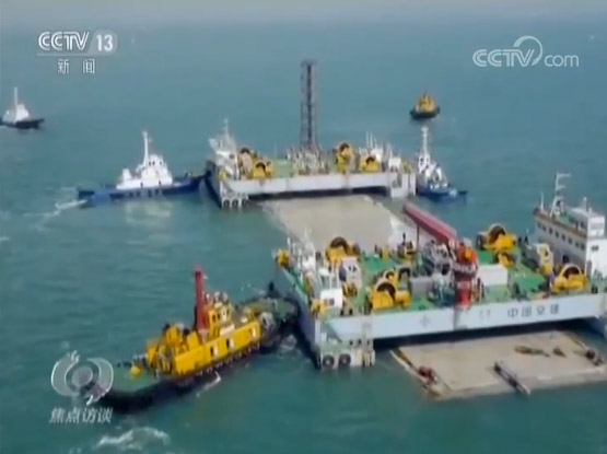 港珠澳大桥管理局总工程师苏权科介绍,从隧道出来出了水面不能直接接到桥,就必须有一个人工岛,人工岛上再伸到海底去,这样就形成了一个桥岛隧组合的方案。