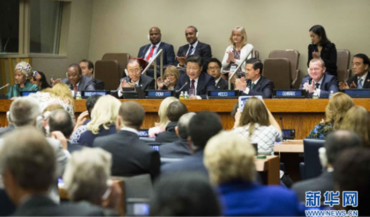 2015年9月27日,习近平出席并主持全球妇女峰会。在主题演讲中,他站在人类命运与历史的高度,向世界发出了促进性别平等和妇女全面发展加速行动的中国倡议。
