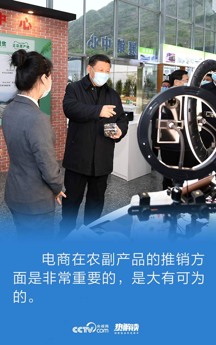 热解读“电商在农副产品的推销方面是非常重要的,是大有可为的。”直播平台前,习近平总书记同正在做网上直播卖货准备工作的村民们聊了起来,并点赞农村电商。