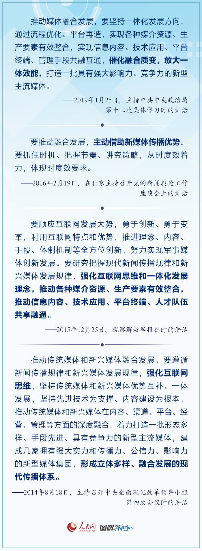 十八大以来,推动媒体融合发展是党中央的重大决策和战略部署,加强顶层设计、体制机制创新也成为媒体融合发展的应有之义。一步一个脚印,习近平总书记多次在媒体考察调研、新闻舆论工作会议上等重要场合都提出了媒体融合发展的方式和路径。