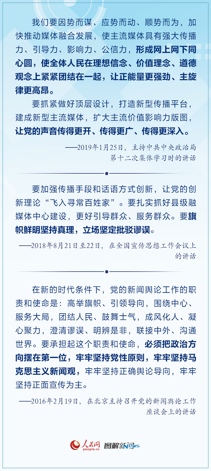 这正是媒体融合发展的根基所在。因此,习近平总书记在多个场合反复强调,媒体融合发展的目的就是要“弘扬主旋律,激发正能量”,就是要“做大做强主流舆论”,就是要“让党的声音传得更开、传得更广、传得更深入”。