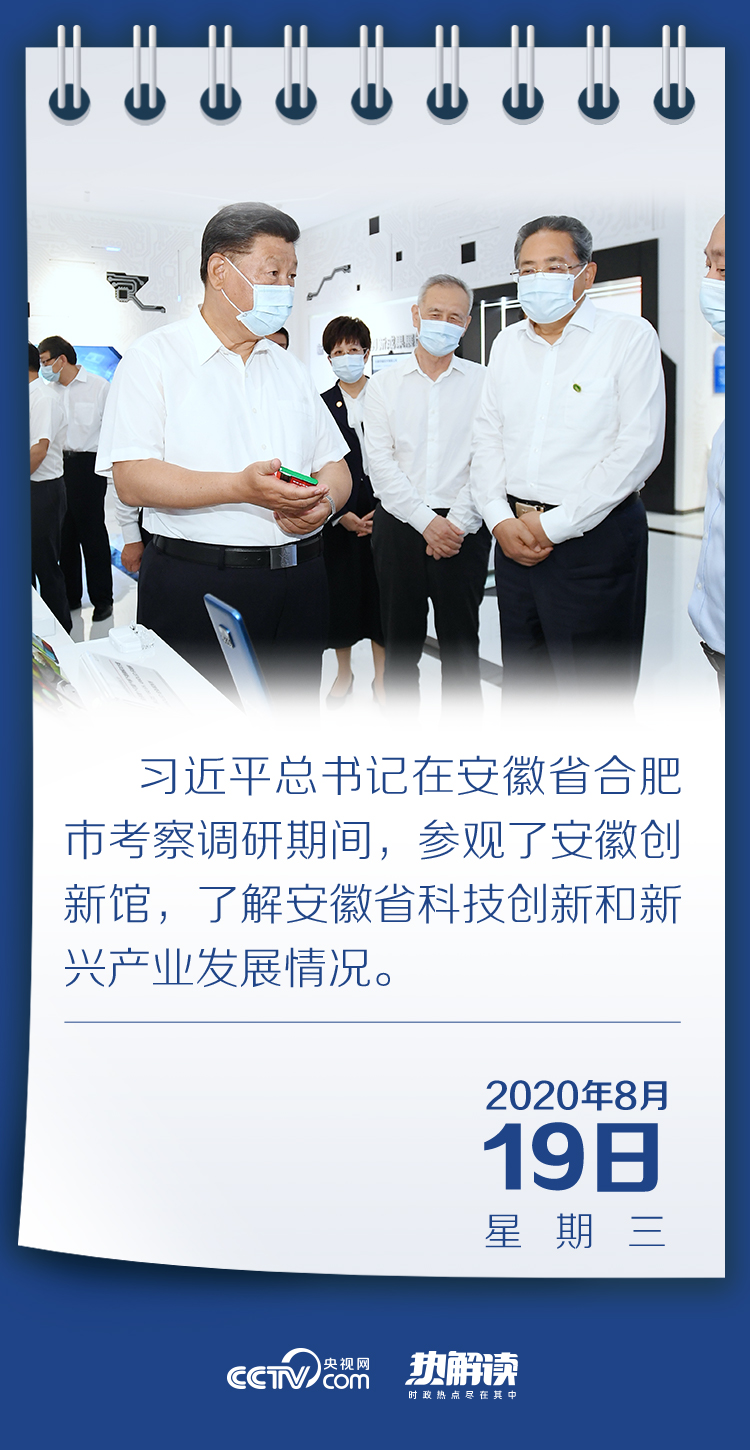 热解读|8月19日,在安徽省考察调研的习近平总书记专程来到安徽创新馆,了解安徽省科技创新和新兴产业发展情况。