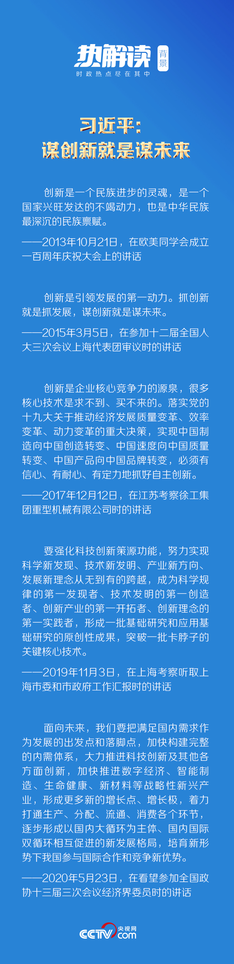 走进企业工厂,一遍遍强调产品创新;出席重要会议活动,部署科技创新要点;重大科技成果发布,致信勉励研发人员……