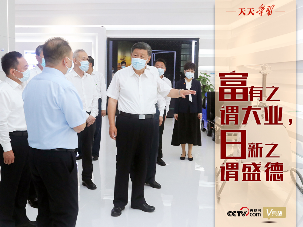 上述讲话中引用的“富有之谓大业,日新之谓盛德”出自《周易·系辞上传》,意思是:广泛创造物质财富和精神财富叫做弘大功业,持续永远的日日增新叫做盛美德行。