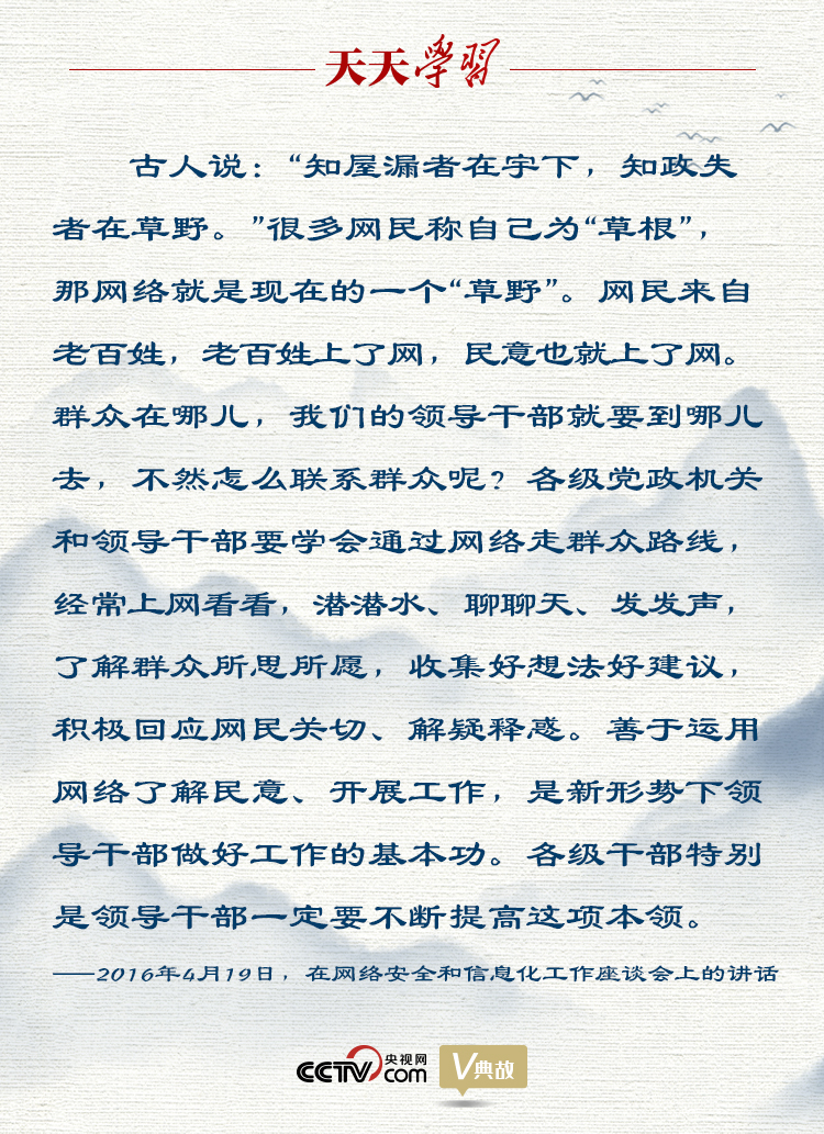 改革开放以来,民生日益改善,民声表达渠道逐渐增多。互联网的出现,为立体交互式的、官民互动式的扁平化管理提供了手段和途径。2016年4月19日,在网络安全和信息化工作座谈会上,习近平总书记又一次引用了王充的这句话。他说——