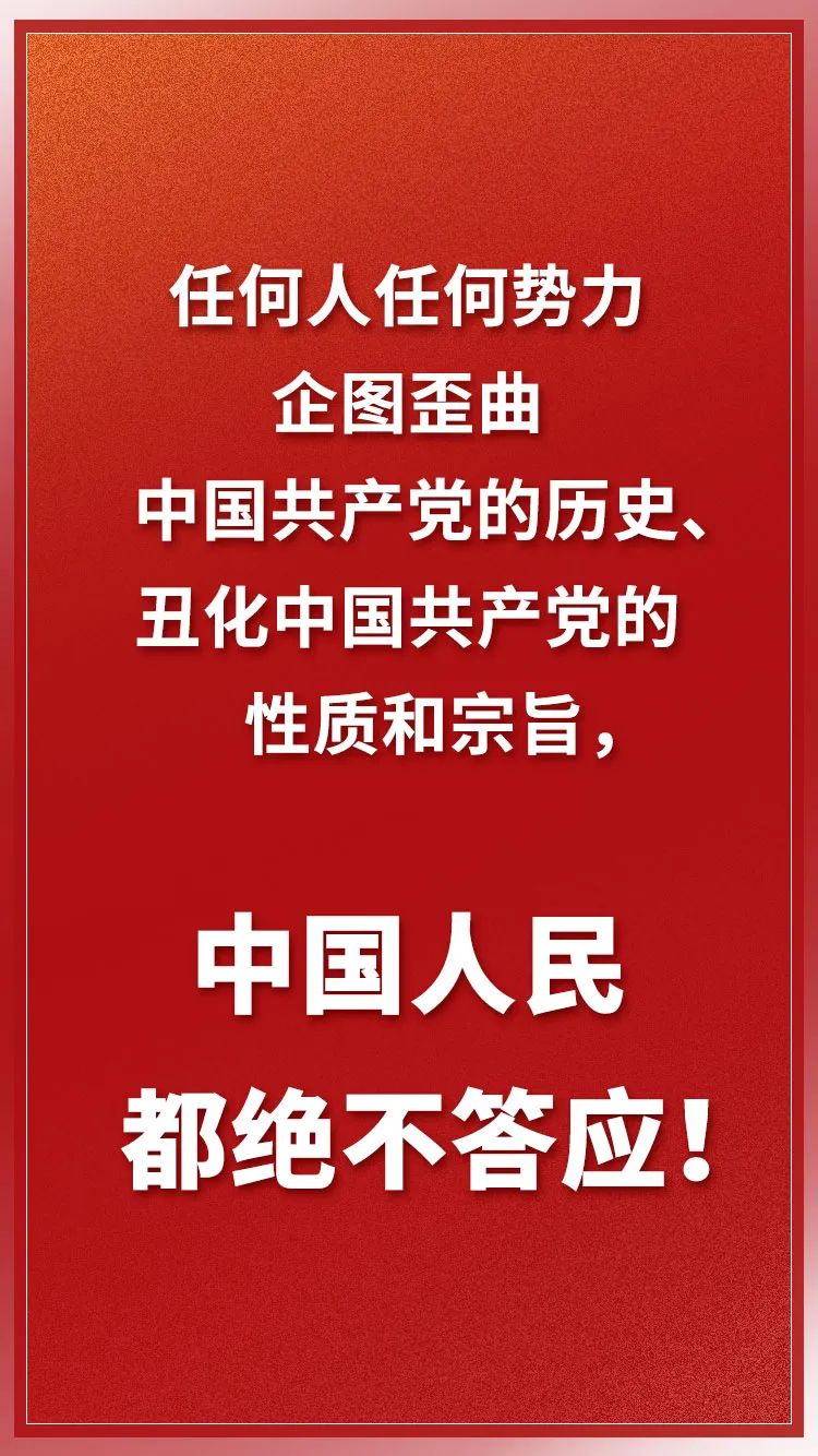 ——实现中华民族伟大复兴,必须坚持中国共产党领导。办好中国的事情,关键在党。只要我们深入了解中国近代以来的历史就不难发现,鸦片战争以后的很长时间里,中国呈现各自为政、一盘散沙的乱象,这是日本军国主义敢于发动全面侵华战争的重要原因。如果没有中国共产党领导,完成民族独立和解放的任务就可能拖得更久、付出的代价更大,我们的国家更不可能取得今天这样的发展成就、更不可能具有今天这样的国际地位。坚持党的全面领导,是国家和民族兴旺发达的根本所在,是全国各族人民幸福安康的根本所在。我们要聚精会神抓好党的建设,使我们党越来越成熟、越来越纯洁、越来越强大、越来越有战斗力。全国各党派、各团体、各民族、各阶层、各界人士要紧密团结在党中央周围,万众一心向前进。任何人任何势力企图歪曲中国共产党的历史、丑化中国共产党的性质和宗旨,中国人民都绝不答应!