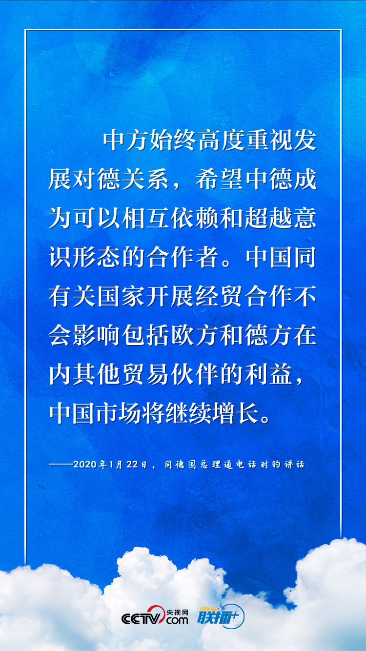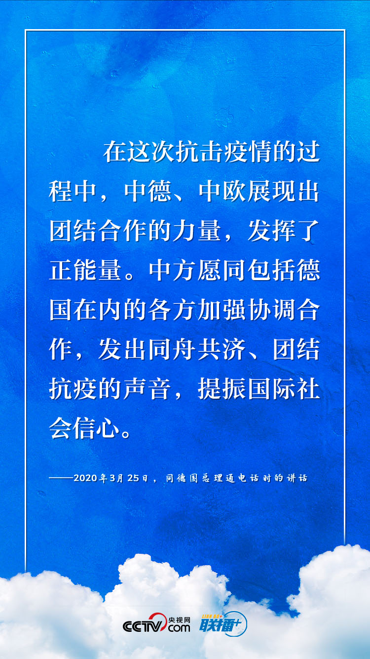 联播+新冠肺炎疫情暴发以来,中国和德国、欧盟相互支持、相互帮助。习近平主席多次与德欧领导人开展“云外交”,阐明加强合作的重要性。