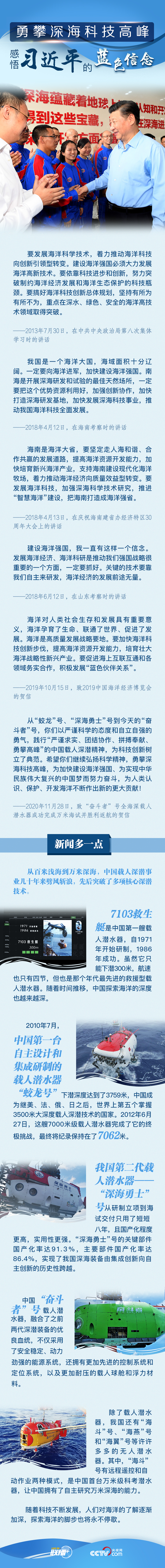 习近平总书记一直重视海洋强国建设,并要求加快发展深海科技事业,推动我国海洋科技全面发展。央视网《联播+》梳理总书记关于发展海洋科技的相关讲话,与您一起感悟总书记的“蓝色信念”。