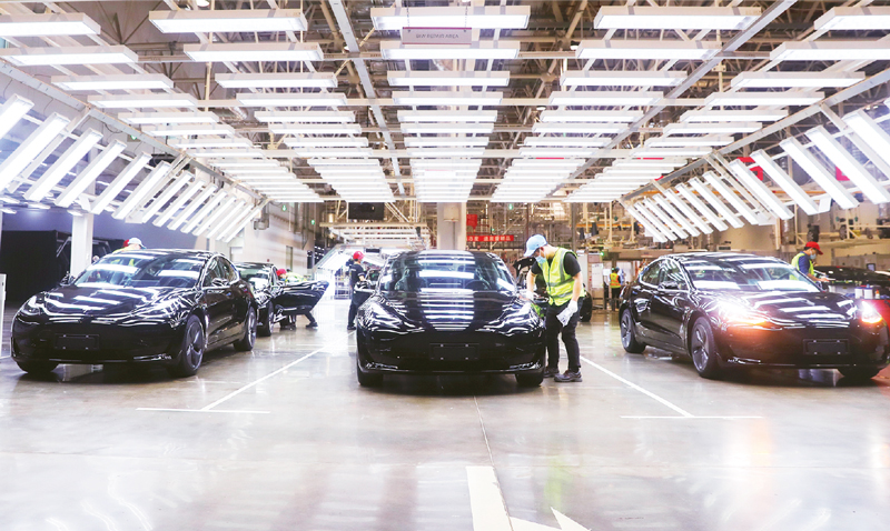 2020年12月,首批出口欧洲的7000多辆中国制造的特斯拉汽车部分抵达比利时泽布吕赫港,销往德国、法国、意大利等国家。美国品牌、中国制造、出口欧洲,特斯拉汽车的例子再次证明,各国互联互通、合作共赢的趋势不可逆转。图为工作人员在特斯拉上海超级工厂内作业。