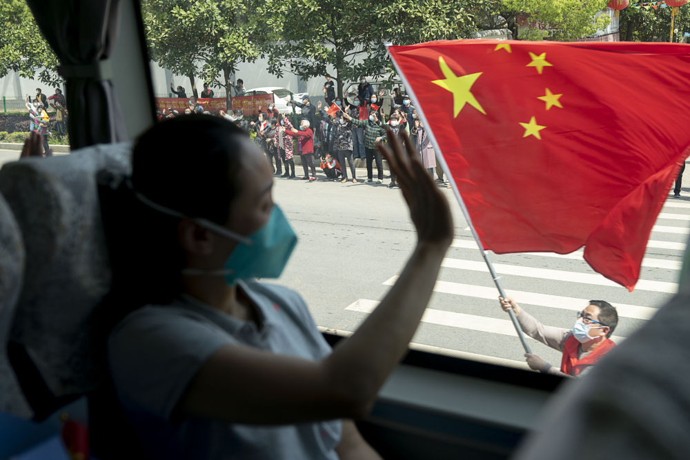 4月15日,武汉市民自发上街送别北京协和医院国家援鄂抗疫医疗队。新华社记者 熊琦 摄
