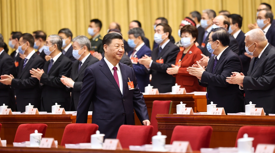 习近平、李克强、汪洋、王沪宁、赵乐际、韩正、王岐山和大会主席团成员在主席台就座。