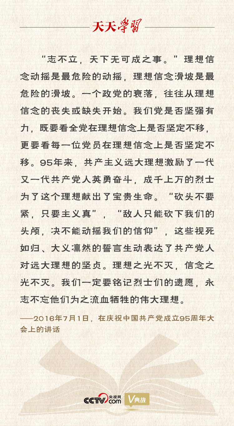 理想因其远大而为理想,信念因其执着而为信念。理想信念就是共产党人精神上的“钙”,没有理想信念,理想信念不坚定,精神上就会“缺钙”,就会得“软骨病”。只有理想信念坚定,才能在各种诱惑面前立场坚定,才能在大是大非面前旗帜鲜明,才能在风浪考验面前无所畏惧。
