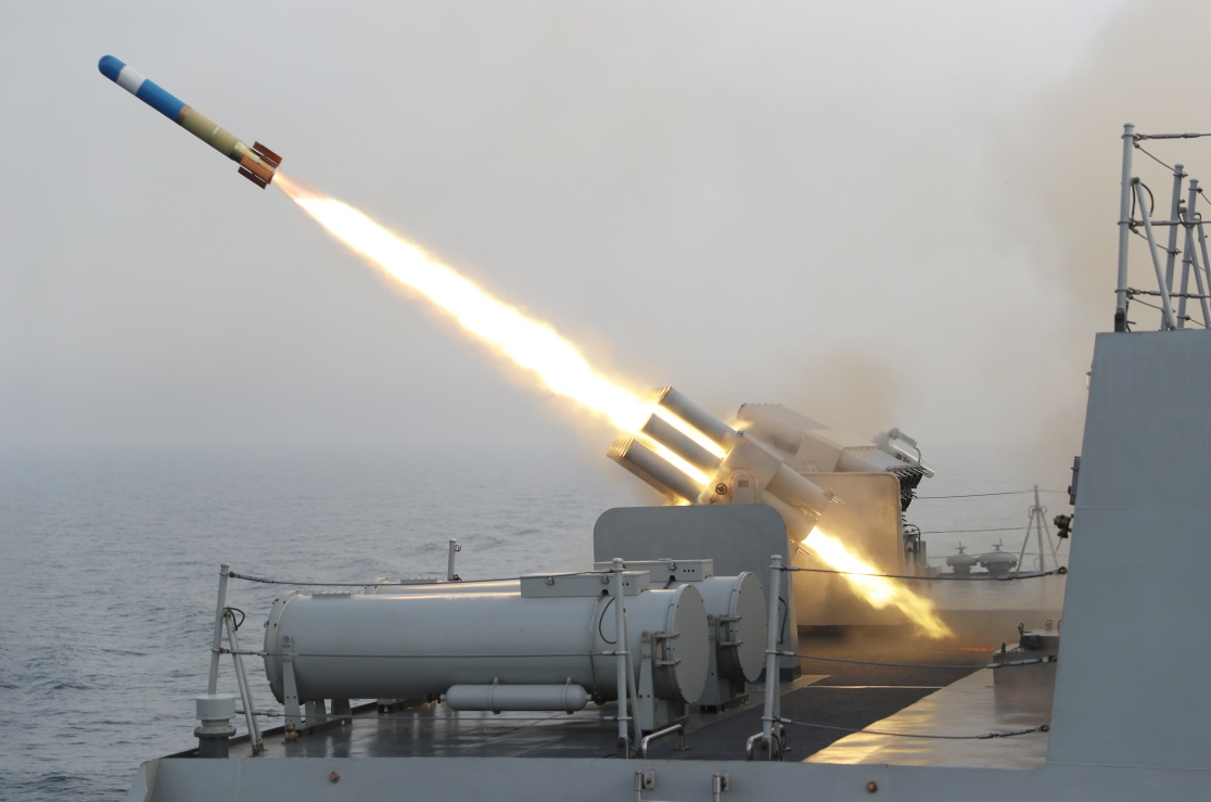 △北部战区海军某驱逐舰支队贵阳舰发射水声对抗器材
