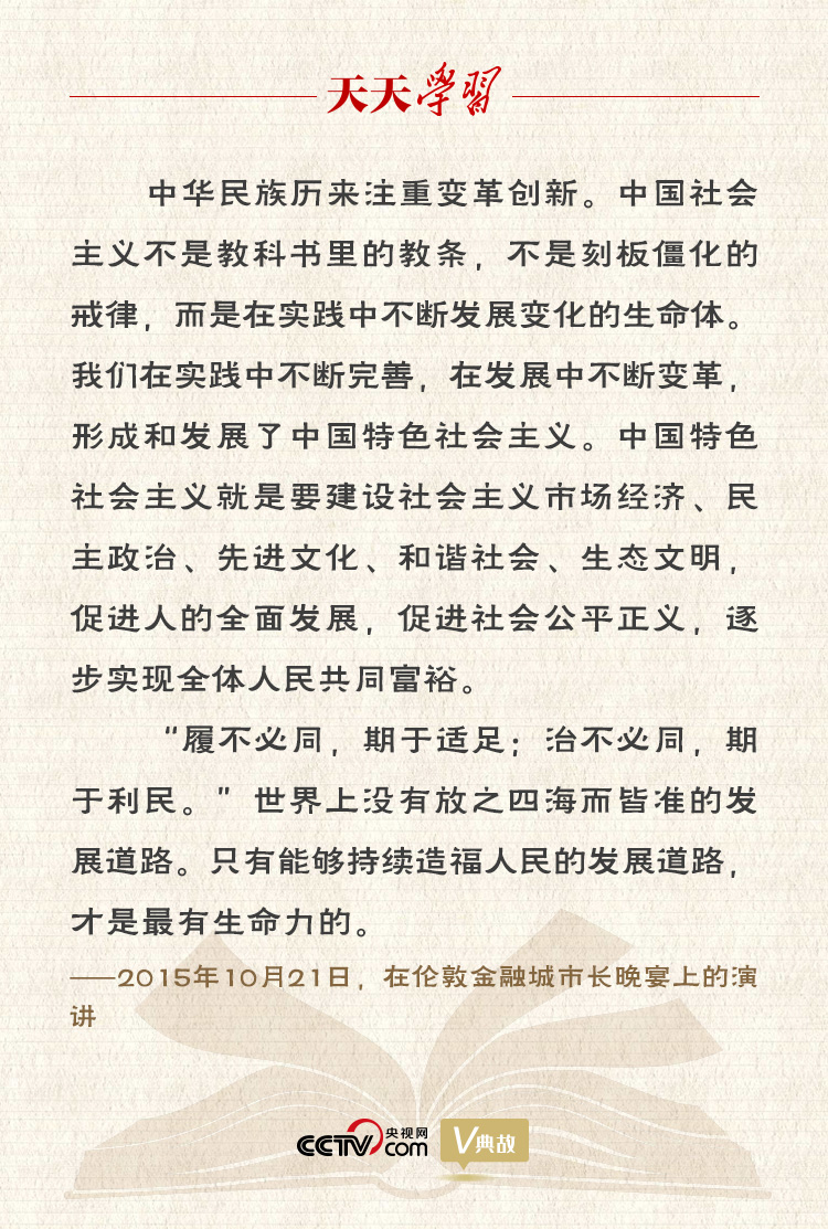 近代以后,中国饱受战乱动荡,历经长达一个多世纪的磨难。100多年前,中国人民开始“睁眼看世界”,努力探寻救国救民的道路。中国民主革命的先行者孙中山先生曾经到英国求学。在经历君主立宪制、议会制、总统制等的失败尝试后,中国最终选择了社会主义道路。这是历史的选择、人民的选择。中国共产党以马克思主义为指导,领导中国人民经过28年的浴血奋战最终取得革命胜利、实现民族独立和人民解放。新中国成立以来,我国社会各方面都发生了巨大变化,尤其是改革开放以来,我国经济快速发展,综合国力进一步增强,人民生活不断改善,社会各项事业全面进步。社会主义在中国显示出蓬勃生机和强大活力,中国用几十年时间走完了发达国家几百年走过的发展历程。这一切充分说明,中国人民正走在正确的道路上。