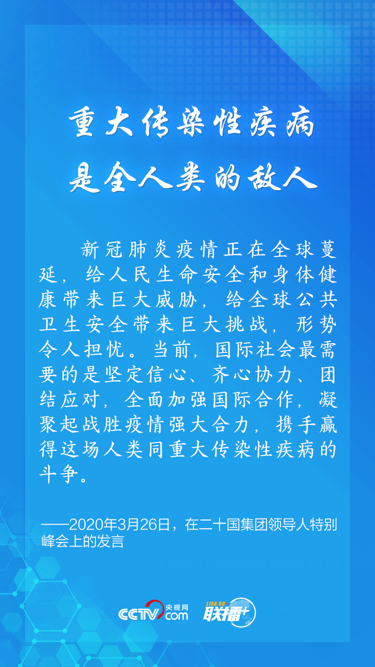 新冠肺炎疫情发生以来,中国始终积极参与全球抗疫行动,阐明中国理念、提出中国主张。习主席更是身体力行,多次出席“云会议”,站在守护全人类生命安全的高度,呼吁国际社会团结合作,坚持多边主义、推动构建人类卫生健康共同体。