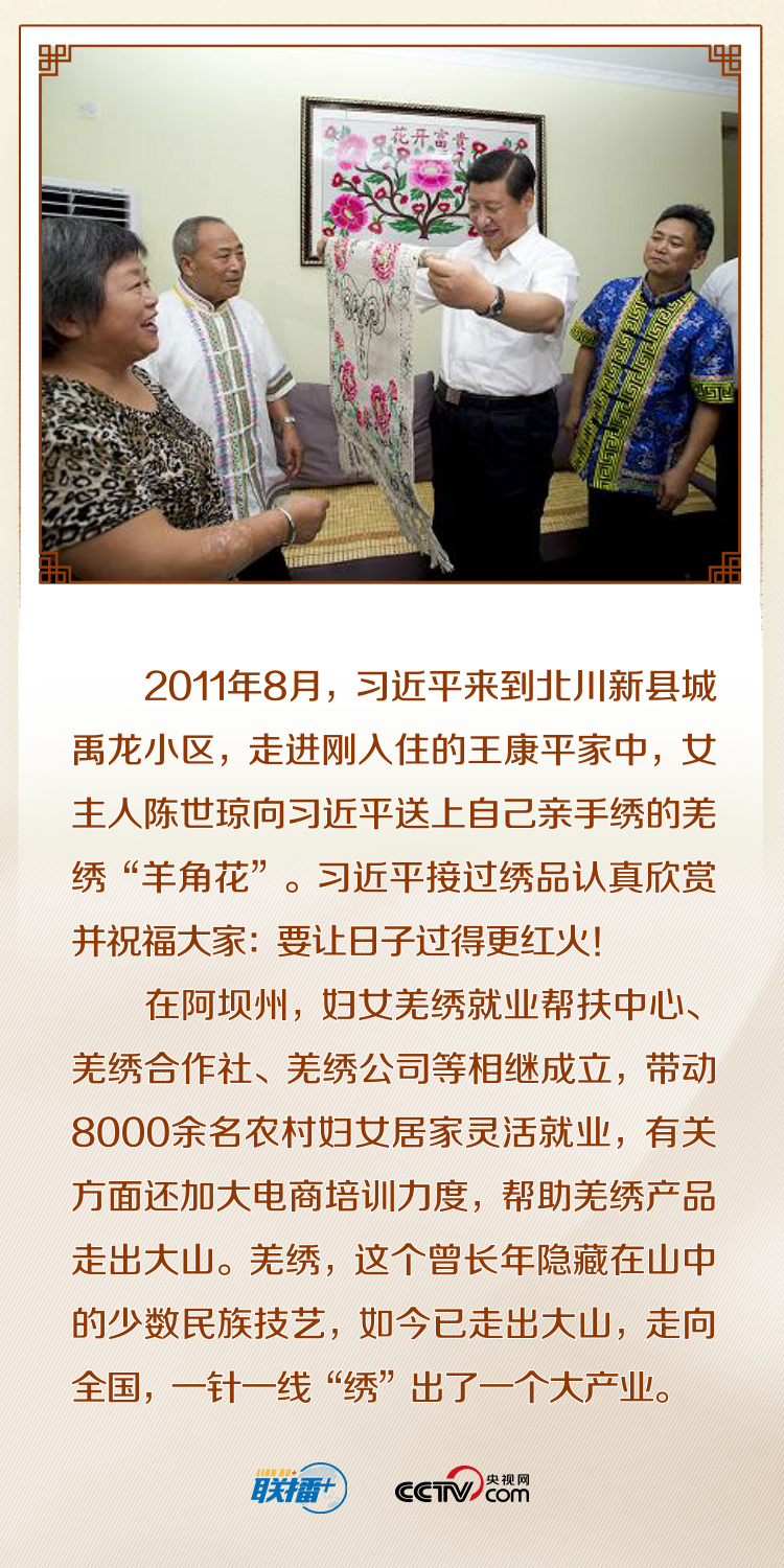 央视网《联播+》特进行梳理,带您跟随总书记一起感受一针一线“绣”出的美好生活和人们用双手创造的幸福路。