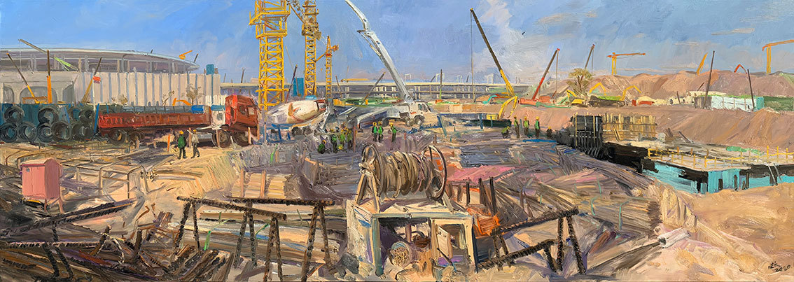 《雄安进行时之一?筋骨》 布面油画 200X600cm 2020年 范迪安 绘