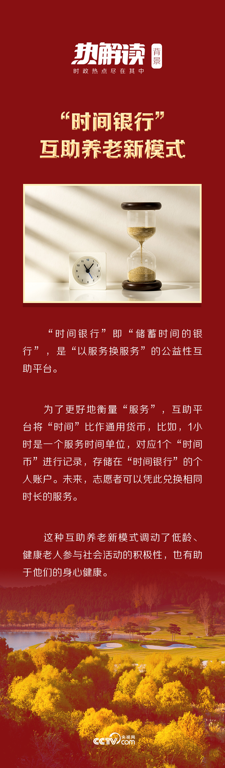 同总书记交谈的几位身穿红色马甲、佩戴党员徽章的同志正是服务中心的志愿者,他们本着“今天为别人服务,明天免费享受服务”的理念,践行“时间银行”这一互助养老新模式。