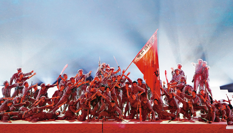 长征这一人类历史上的伟大壮举,留给我们最可宝贵的精神财富,就是伟大长征精神。2021年6月28日晚,庆祝中国共产党成立100周年文艺演出《伟大征程》在国家体育场盛大举行。这是戏剧与舞蹈《长征》。 新华社记者 陈晔华/摄