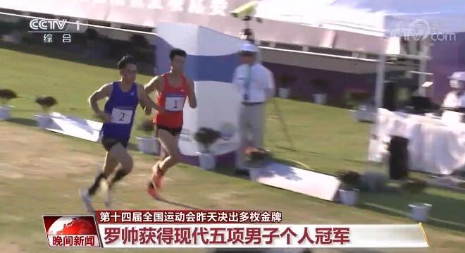 现代五项比赛中,上海队的罗帅以总分1461分夺得男子个人比赛的冠军。
