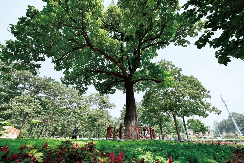 焦裕禄当年亲手栽下的幼桐已长成大树,人们亲切地叫它“焦桐”。 新华社记者 冯大鹏/摄