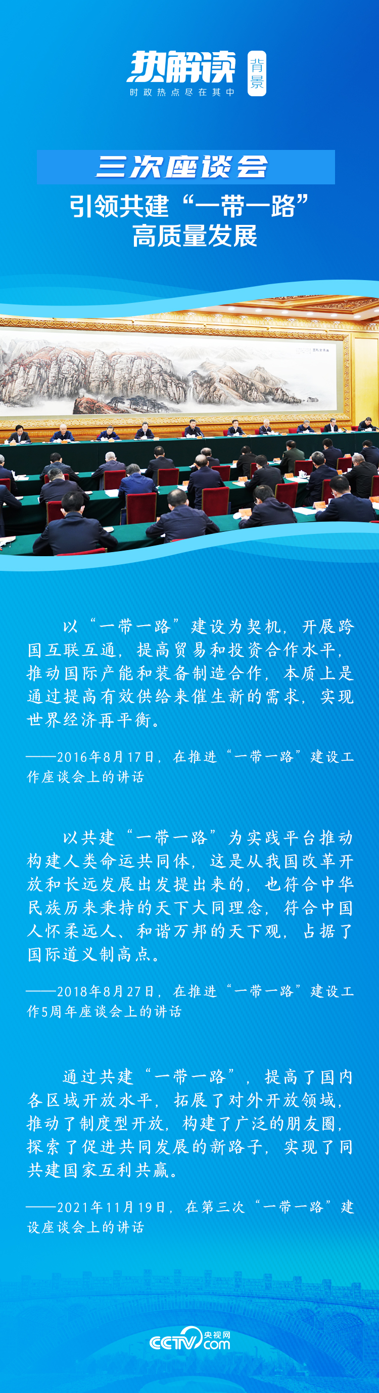 11月19日,习近平总书记在北京出席第三次“一带一路”建设座谈会并发表重要讲话。