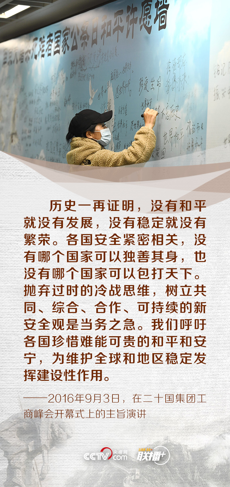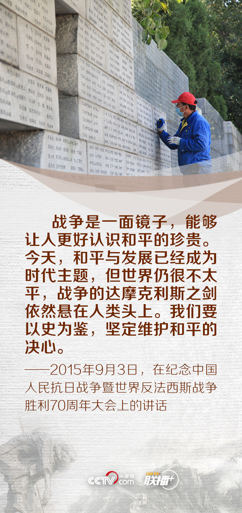 “历史不会因时代变迁而改变,事实也不会因巧舌抵赖而消失。”“和平像阳光一样温暖、像雨露一样滋润。有了阳光雨露,万物才能茁壮成长。有了和平稳定,人类才能更好实现自己的梦想。”2014年、2017年,习近平总书记曾两次出席南京大屠杀死难者国家公祭仪式。