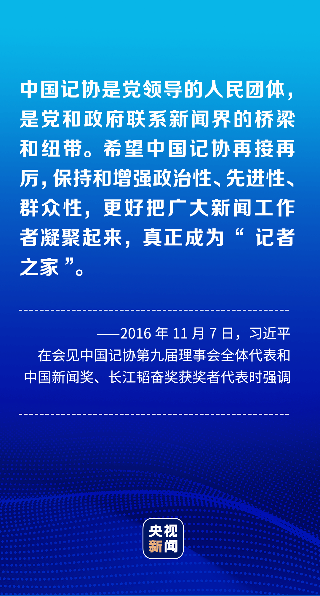 在会见中国记协第九届理事会全体代表和中国新闻奖、长江韬奋奖获奖者代表时,在致中国记协成立80周年的贺信中,总书记两次要求中国记协保持和增强政治性、先进性、群众性,更好把广大新闻工作者凝聚起来,真正成为“记者之家”。