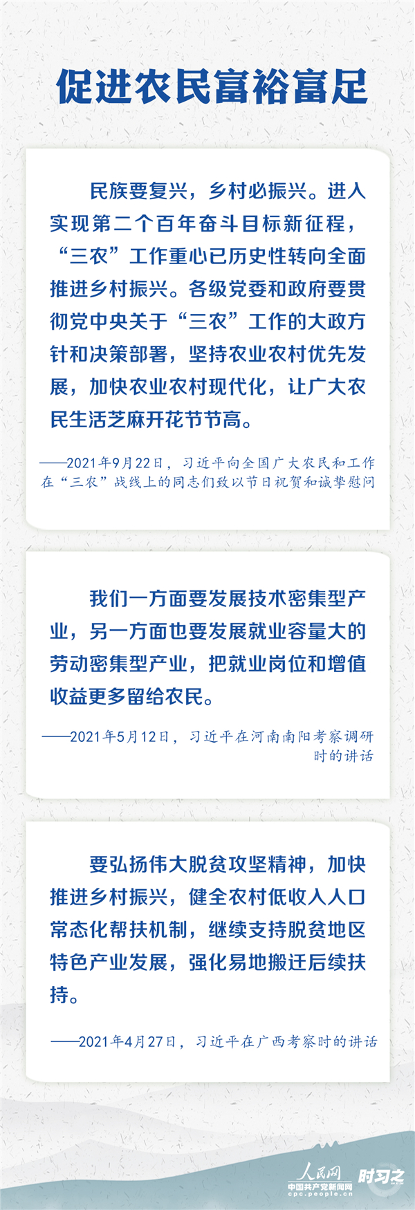 “十四五”开局之年,习近平赴地方考察调研及参加座谈会时,多次发表重要讲话、作出重要指示,始终引领着“三农”工作的重心与方向。