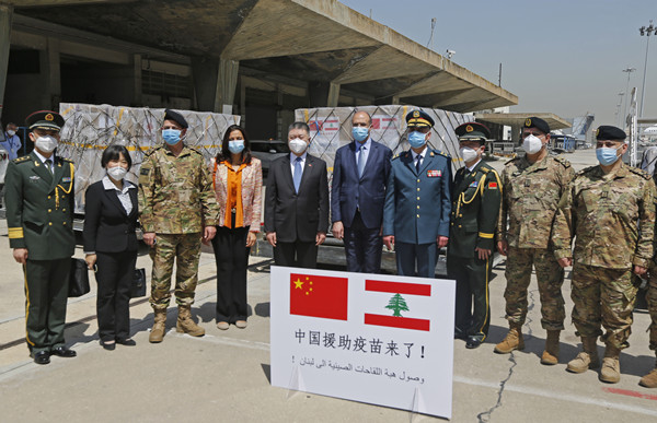 2021年4月6日,中国向黎巴嫩政府和军队援助的两批新冠疫苗运抵贝鲁特拉菲克·哈里里国际机场。新华社发(比拉尔·贾维希 摄)