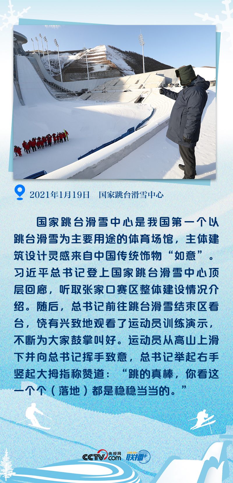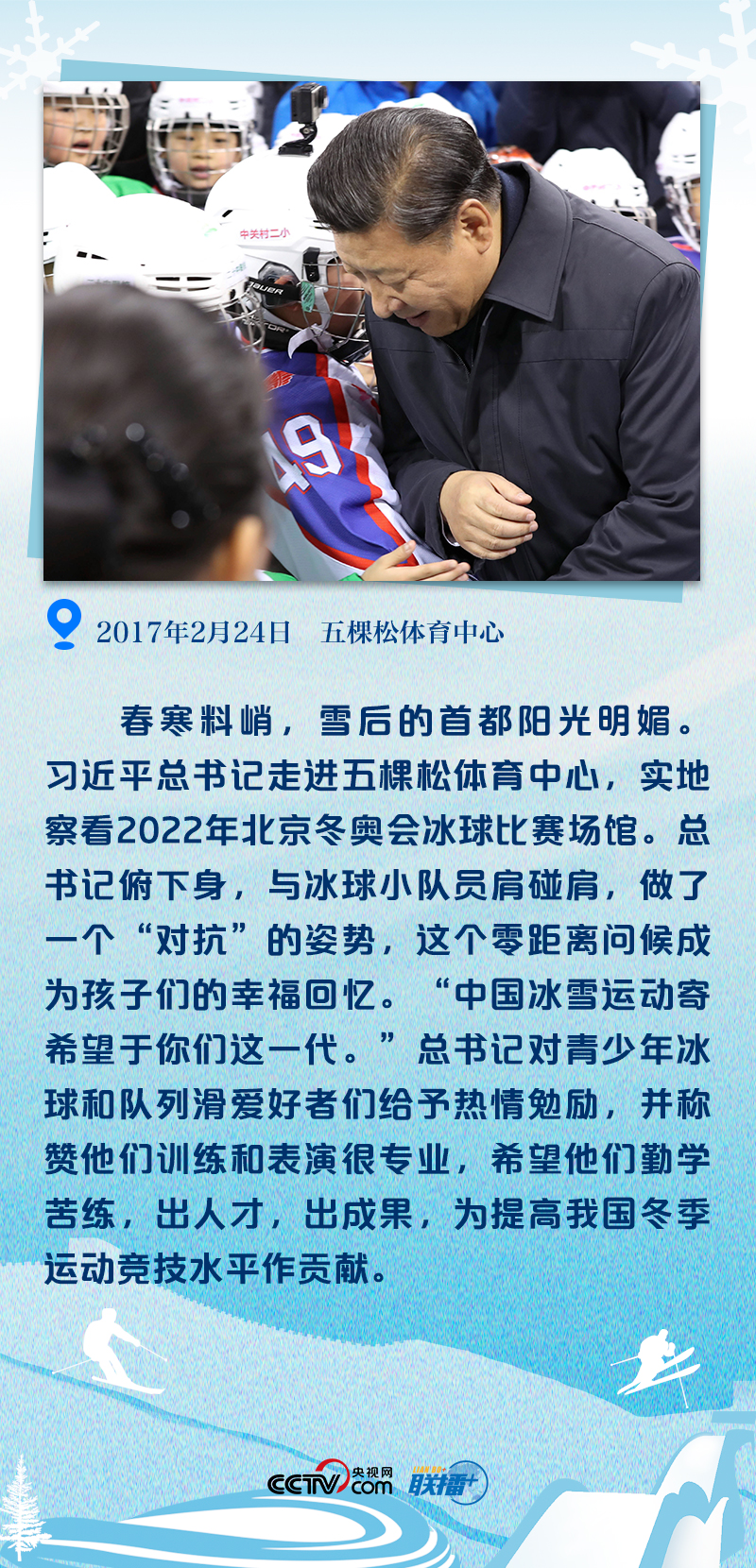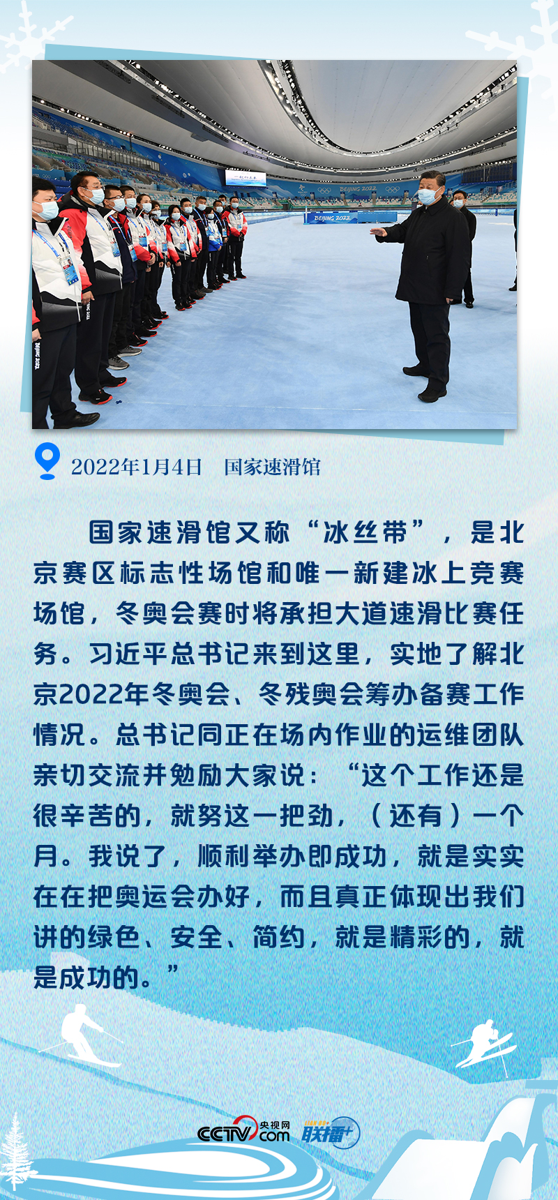 近五年来,从坐落于张家口崇礼区的云顶滑雪场,到北京冬奥会唯一新建冰上竞赛场馆“冰丝带”,再到卢沟桥附近的二七厂冰雪项目训练基地,总书记五次考察北京冬奥会筹办工作,一串串脚印被大地铭记,一次次握手被时光定格,一声声勉励被铭记于心。
