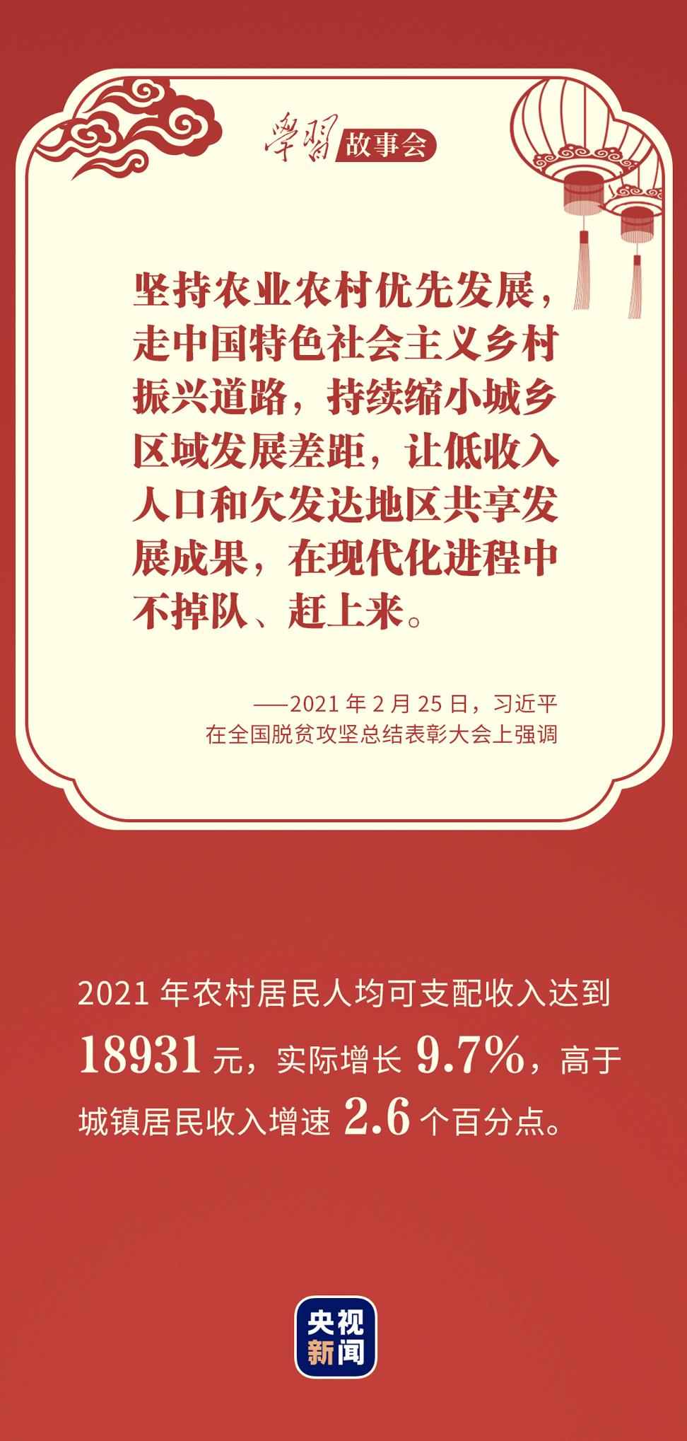 习近平总书记对乡亲们说,建设现代化国家离不开农业农村现代化,要继续巩固脱贫攻坚成果,扎实推进乡村振兴,让群众生活更上一层楼,在推进农业农村现代化中越走越有奔头。