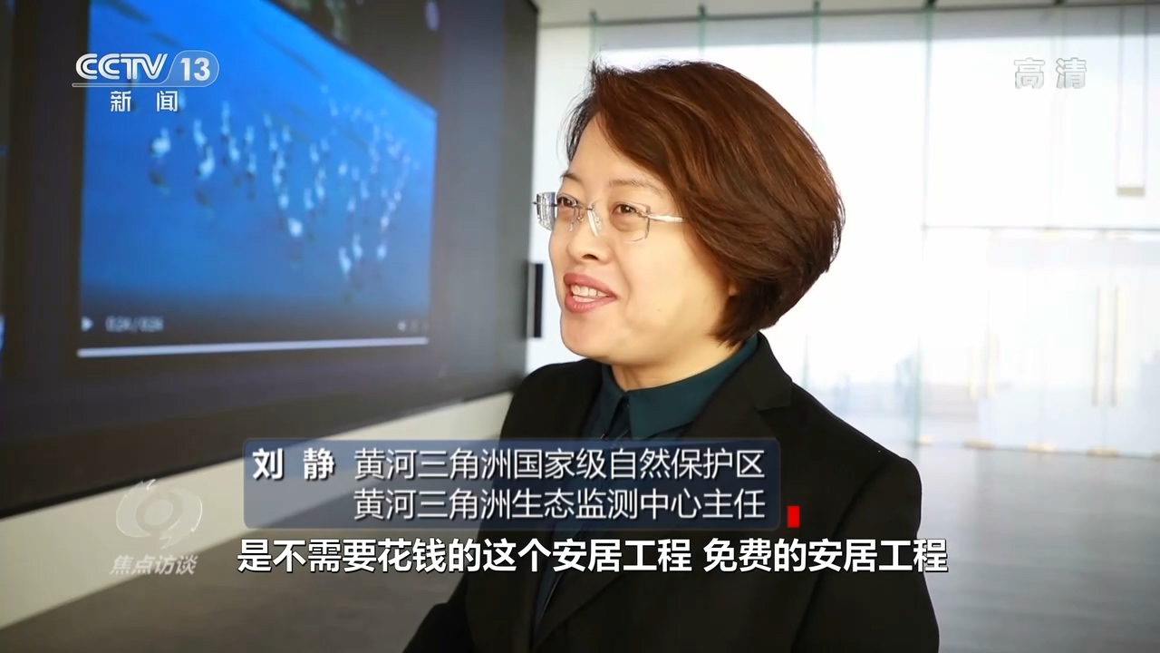 黄河三角洲国家级自然保护区黄河三角洲生态监测中心主任刘静说:“当讲到东方白鹳,我们根据它的生活习性打造人工巢的时候,总书记非常感兴趣,而且笑着说你们为东方白鹳造的安居工程,是不需要花钱的安居工程,免费的安居工程。”