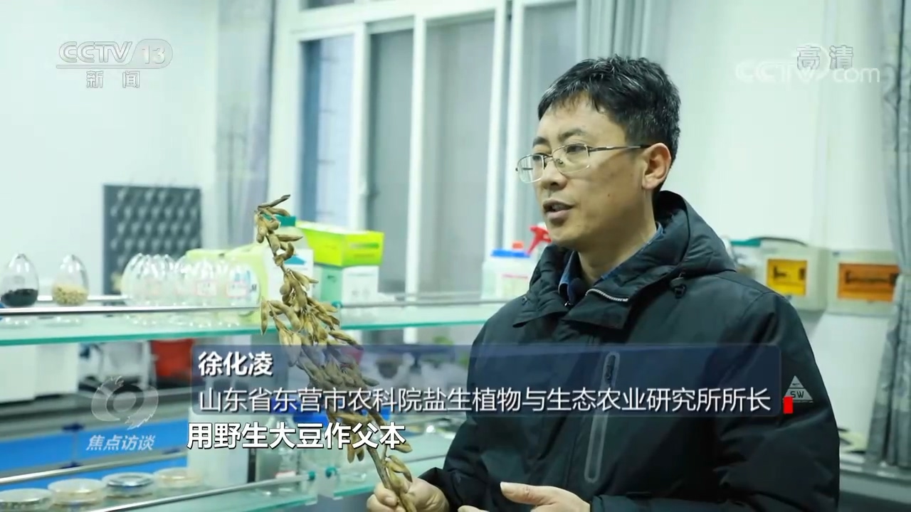 徐化凌说:“我们用栽培大豆作母本,用野生大豆作父本,经过杂交回交十几年,培育出了一个既耐盐又高产的系号,今年这个系号到海南去加代繁殖了,明年可以参加国家的大豆区实验。”
