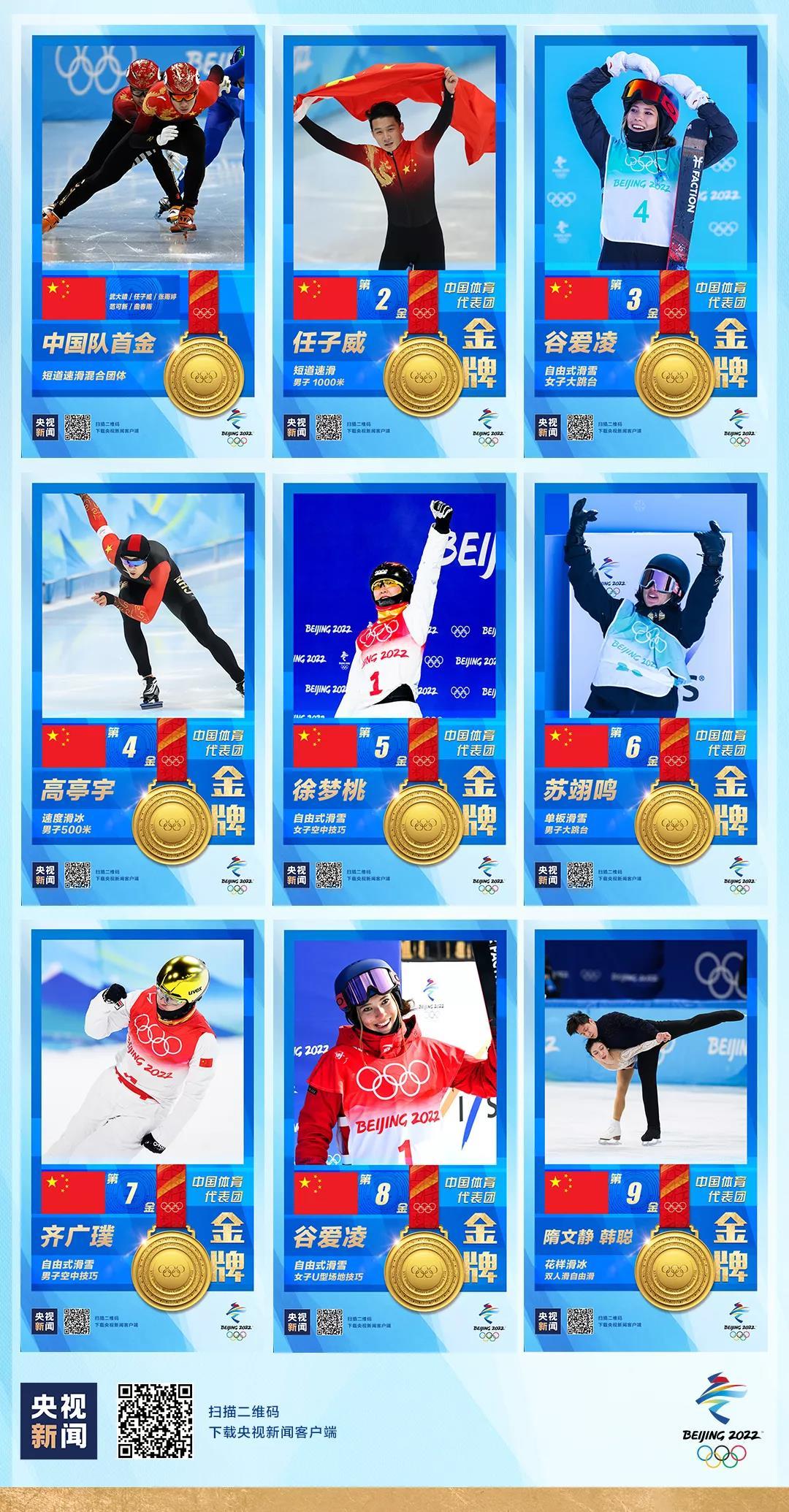 9金4银2铜!这是中国在冬奥会上的最佳战绩。中国代表团位列冬奥会奖牌榜第三名,这也是中国参加冬奥会以来取得的最高排名。