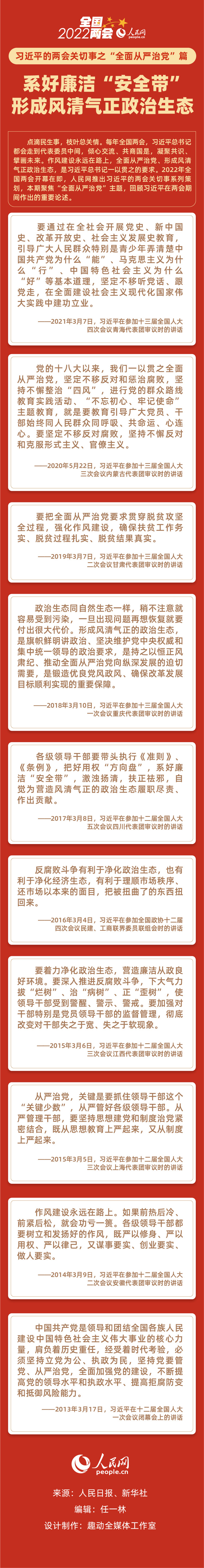 习近平的两会关切事之“全面从严治党”篇:系好廉洁“安全带”,形成风清气正政治生态