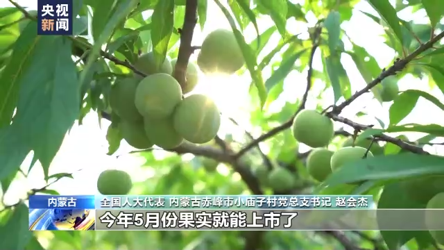 全国人大代表 内蒙古赤峰市小庙子村党总支书记 赵会杰:我们采取反季节的种植模式,今年5月份果实就能上市了。