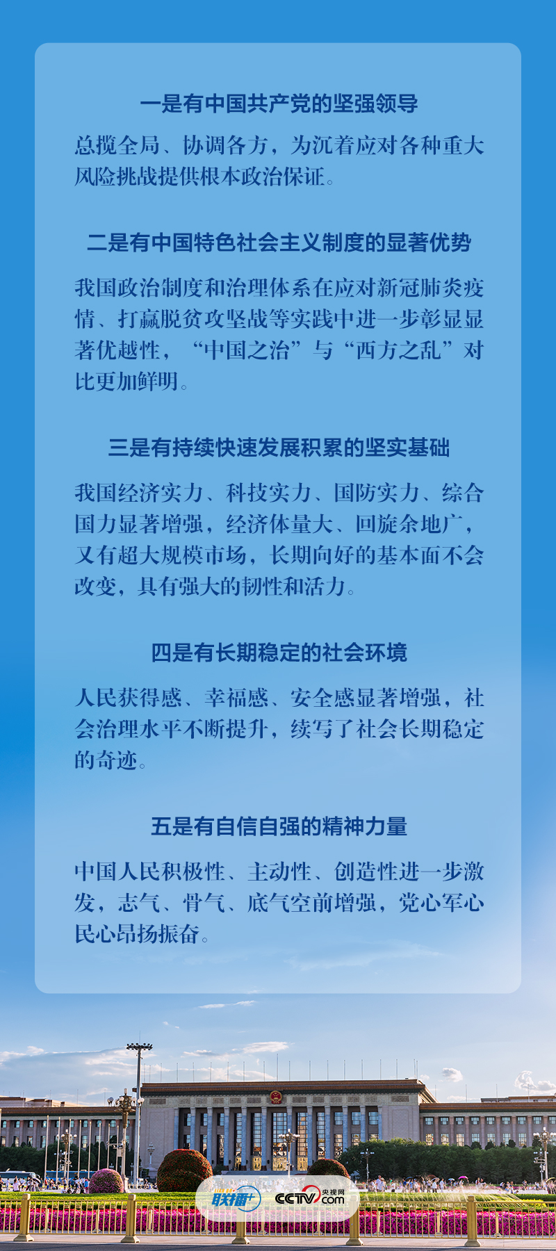 当前,国际形势继续发生深刻复杂变化,百年变局和世纪疫情相互交织,经济全球化遭遇逆流,大国博弈日趋激烈,世界进入新的动荡变革期,国内改革发展稳定任务艰巨繁重。总书记在讲话中列举了我国发展中具备的五方面战略性有利条件:
