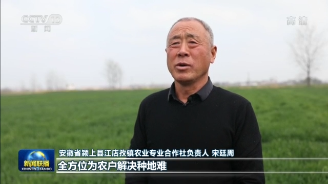 安徽省颍上县江店孜镇农业专业合作社负责人 宋廷周:我们的农机合作社为农户代种、代管、代收,全方位为农户解决种地难,(价格)比散户优惠20%左右。
