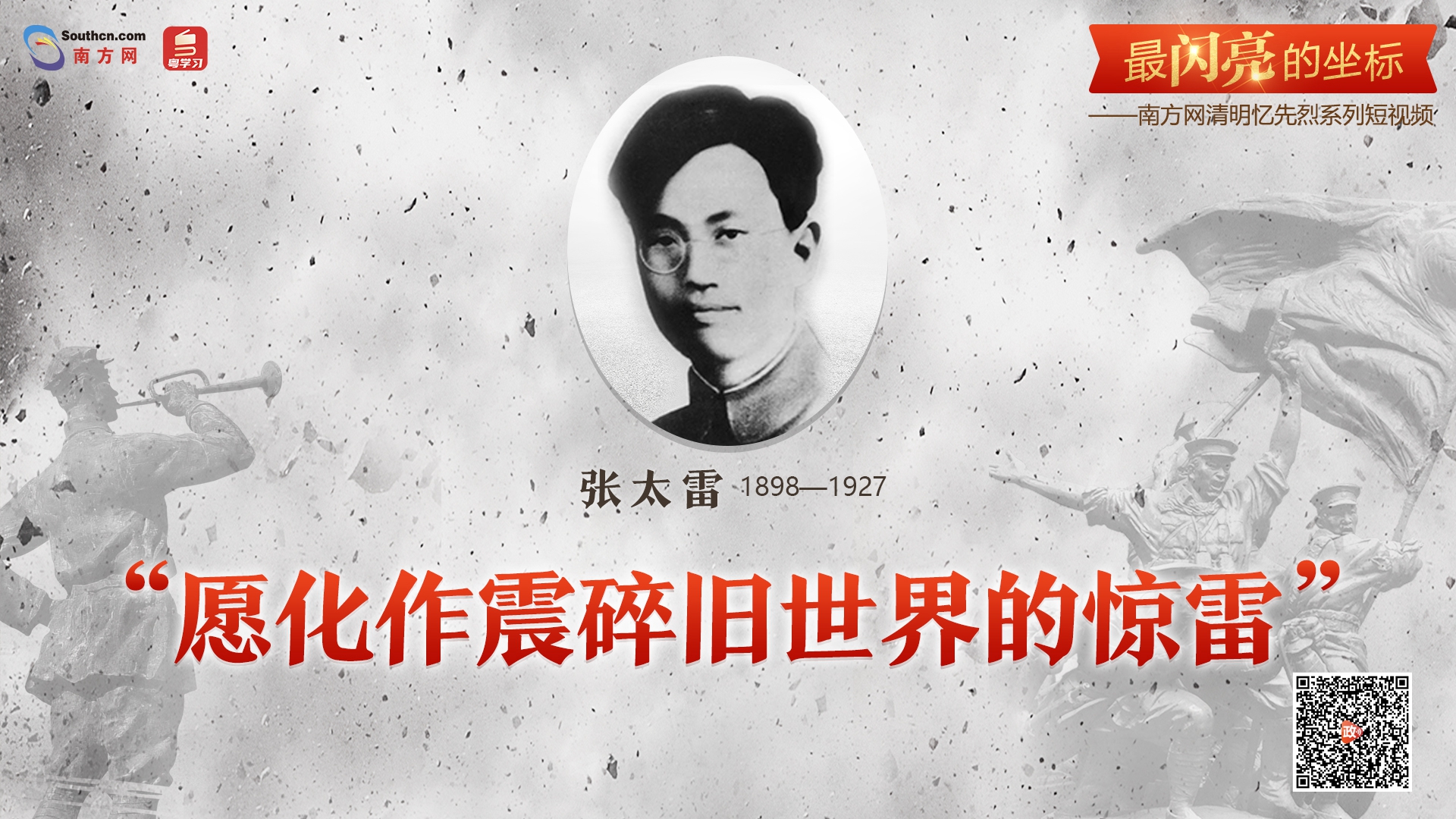 编者按:清明忆英烈,忠魂贯长空。4月1日至5日,南方网、粤学习客户端策划推出“最闪亮的坐标”系列短视频,通过挖掘广东革命烈士的光辉事迹,与大家一起缅怀英烈、学习英烈。今天推出第二篇《张太雷:愿化作震碎旧世界的惊雷》。