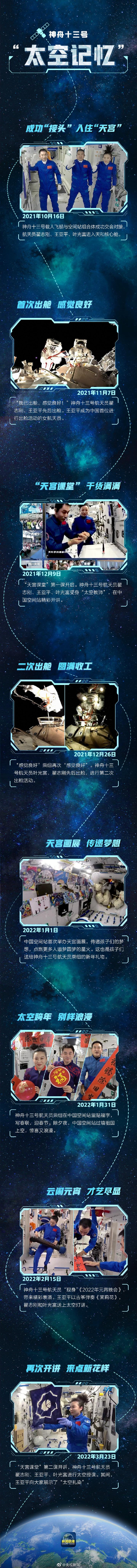 王亚平的冲天辫,翟志刚的“我已出舱,感觉良好”,叶光富化身天宫课堂“最强工具人”,中国人第一次在太空过大年……5个多月来,我们共同见证了这些神十三独家太空记忆。欢迎神十三航天员回家,也期待中国航天向星辰大海继续迈进!