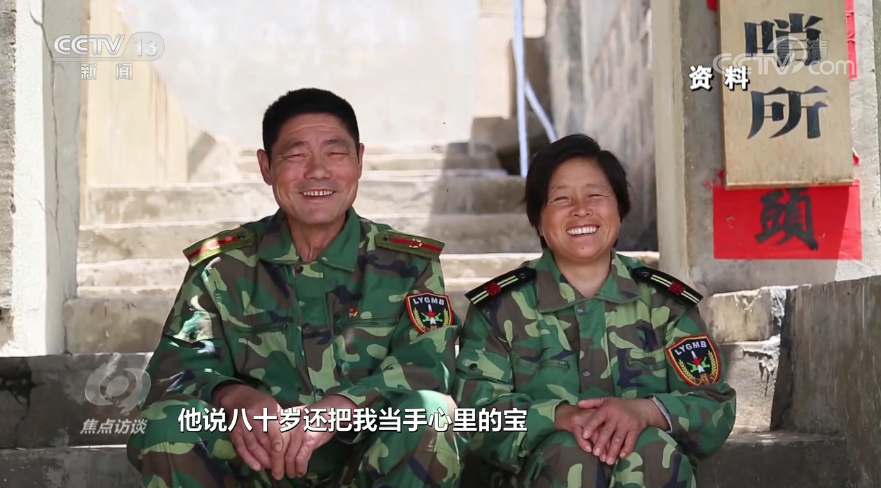 开山岛民兵哨所名誉所长王仕花说:“他挑水我浇树,我一边浇水,一边唱老歌给他听,他都说好听。我唱一首慢慢变老的歌给他听,他说八十岁还把我当手心里的宝。”