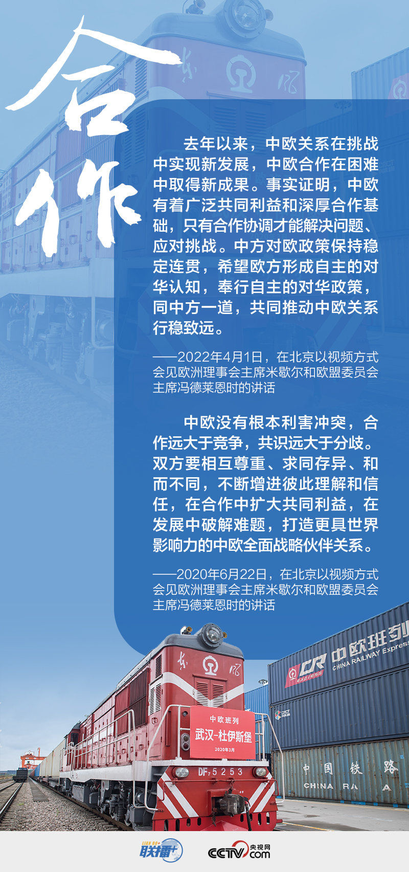 2020年6月22日的高峰会晤中,习主席展望中欧关系再升级:“打造更具世界影响力的中欧全面战略伙伴关系。”