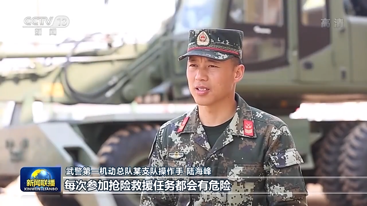 武警第一机动总队某支队操作手 陆海峰:每次参加抢险救援任务都会有危险,但是每当遇到这种危险的时候我们心里面只有一个念头,那就是人民至上、生命至上。只要人民群众需要我们,不管什么时候,什么情况下,我们都要冲上去。