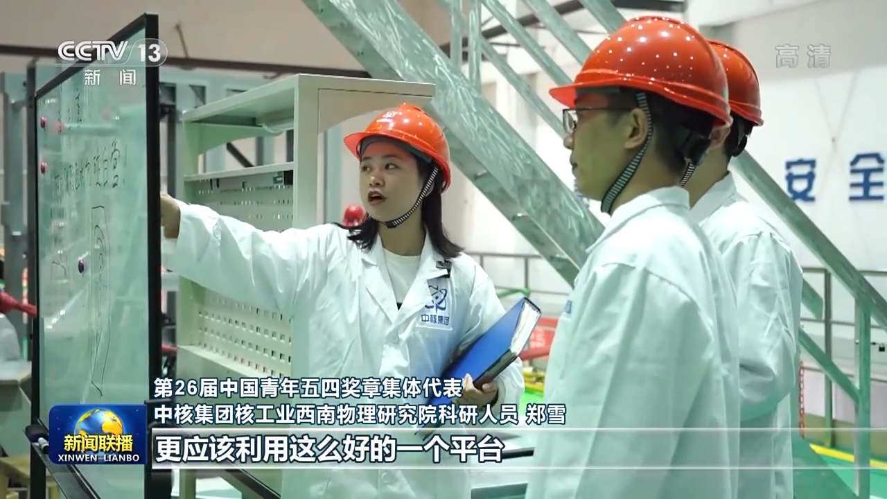 第26届中国青年五四奖章集体代表、中核集团核工业西南物理研究院科研人员 郑雪:我们国家对科研经费的大量投入,人力物力的支持,给我们科研人员营造了一个非常好的科研条件。我们年轻人站在巨人的肩膀上更应该利用这么好的平台,为我们国家乃至整个世界的科研工作、核聚变工作贡献我们青春的力量。