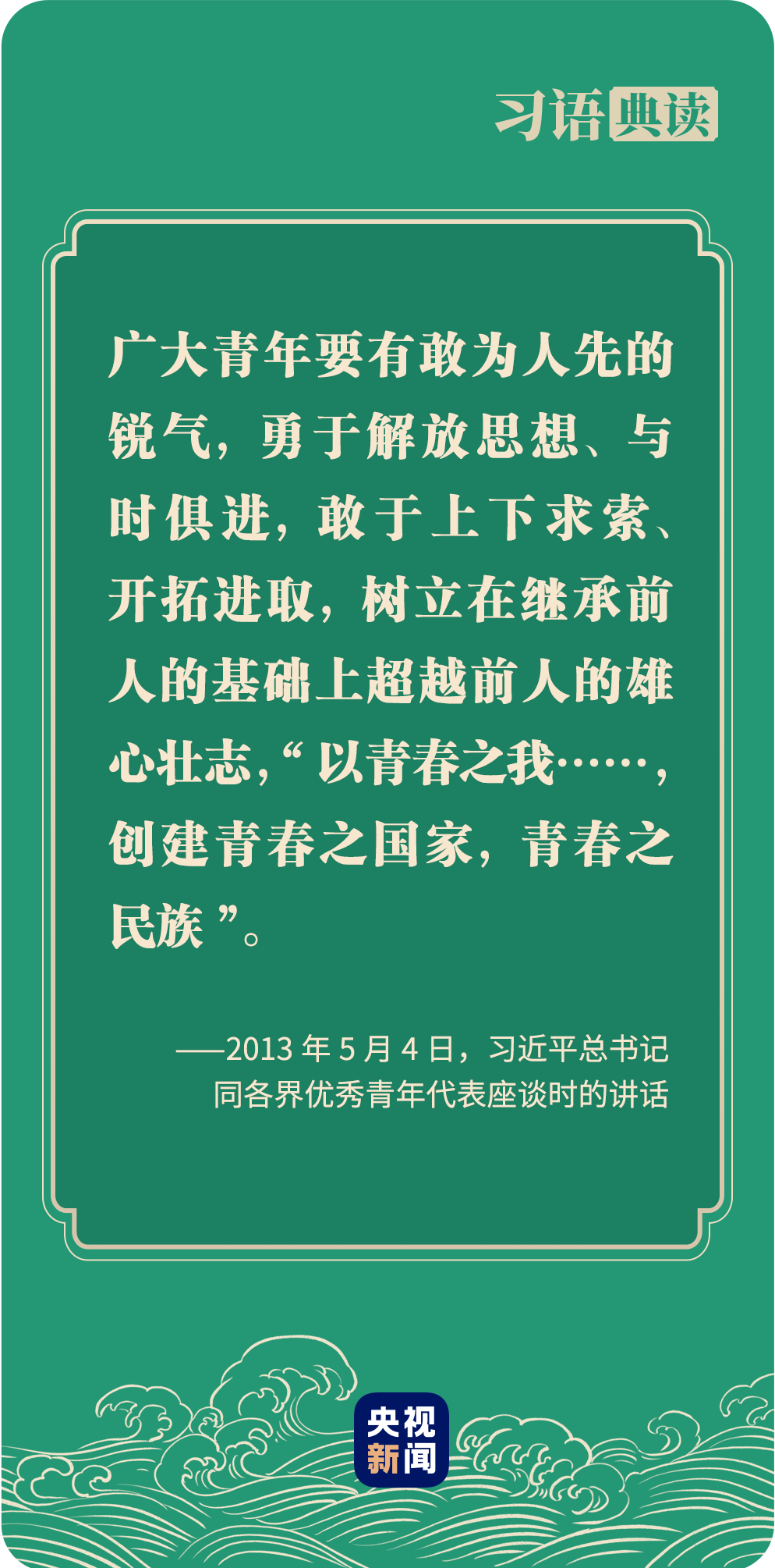 2013年5月4日,党的十八大后的第一个五四青年节。习近平总书记与各界优秀青年代表座谈时,勉励大家:“要有逢山开路、遇河架桥的意志,为了创新创造而百折不挠、勇往直前。”