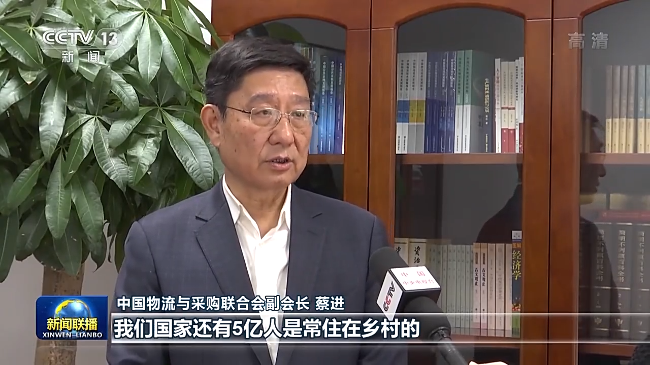 中国物流与采购联合会副会长 蔡进:目前来看的话,我们国家还有5亿人是常住在乡村的,通过农村物流的发展,能够进一步释放农村的消费潜力,对于建立全国统一大市场来讲的话,是一个重要的支撑。