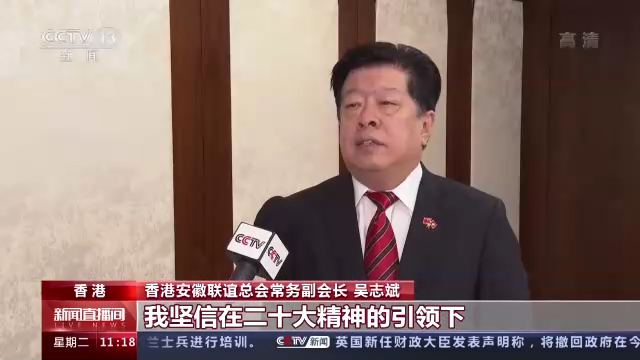 香港安徽联谊总会常务副会长 吴志斌:我坚信在二十大精神的引领下,在中央全力支持下,在“爱国者治港”原则下,香港由治及兴的新阶段一定能跑出融入国家发展大局的加速度,也一定可以在中华民族伟大复兴的征程中贡献自身的优势和独特力量。
