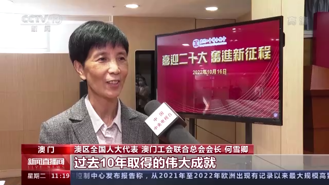 澳区全国人大代表 澳门工会联合总会会长 何雪卿:习近平总书记在报告中全面总结了过去10年取得的伟大成就,对我们中华儿女是一个振奋人心的和巨大的鼓舞。